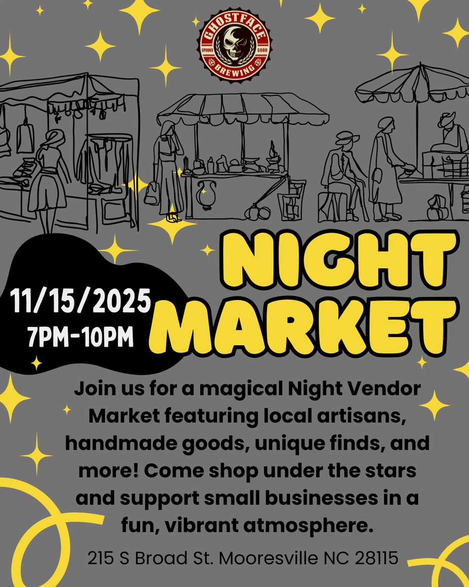 Join us for our Vendor Night Market on Saturday, March 28th from 7–10 PM — an evening filled with creativity, community, and one‑of‑a‑kind finds. Stroll through a curated lineup of local makers and artisans offering unique gifts, handmade goods, and charming trinkets you won’t see anywhere else. Whether you’re shopping for yourself or hunting for the perfect little treasure, this night market is the place to be. Come explore, support small businesses, and enjoy a cozy night out.